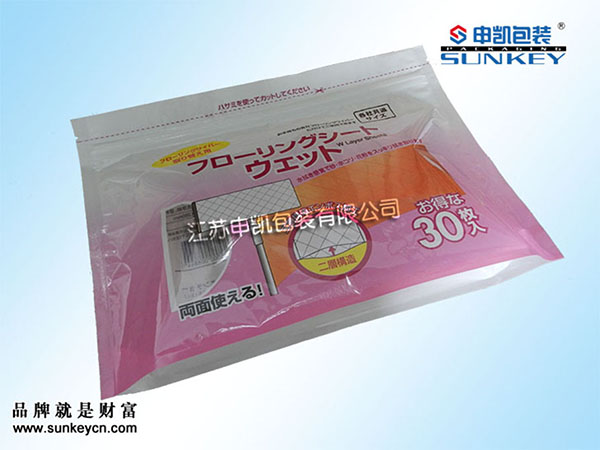说明:彩色印刷站立拉链袋材质一般是由PET/PE组成,经过复合-制袋等多层工艺。
