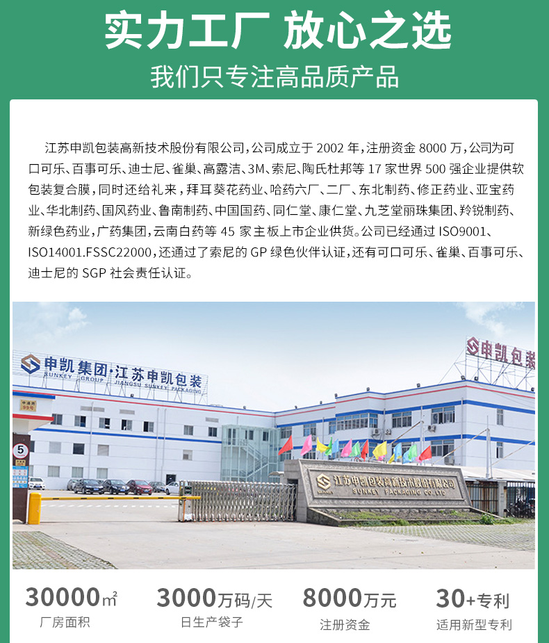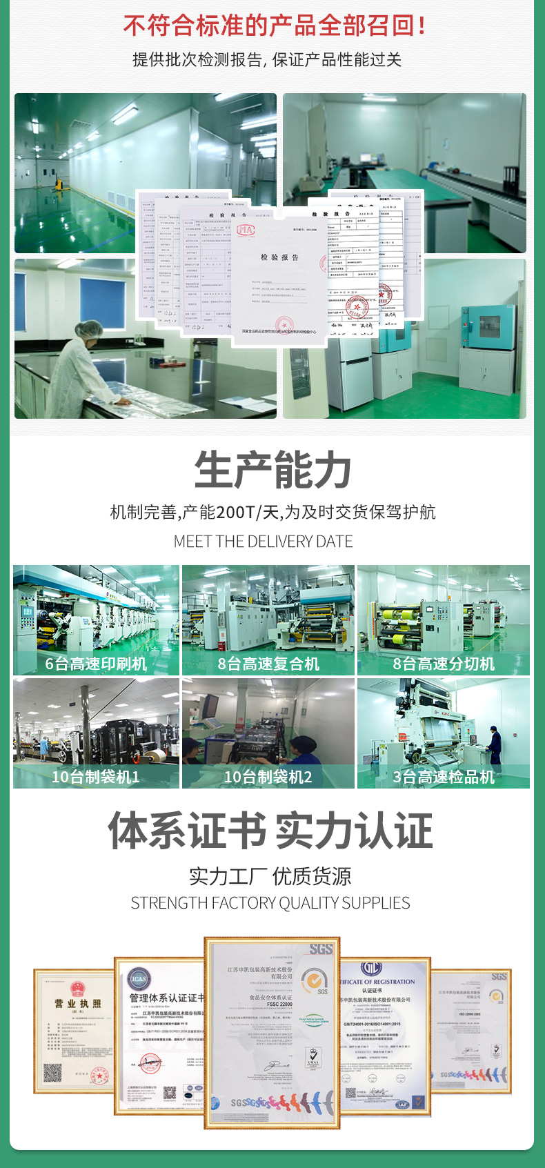 只要用了我们的包装,不管是包装膜的问题还是包装机的问题,都是我们的问题!只要有质量问题,马上召回,不管有多远!
